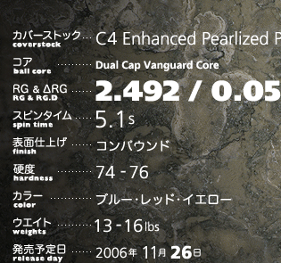 C4パーティクルパールカバーとデュアルキャップバンガードの絶妙なコンビネーションが、オゥサムシリーズで最高の走りとキレを実現しています。曲がり幅は一番大きく、あたりの強いピンアクションは一気にピンをはらう爽快感を感じて頂けます!完売必至! |