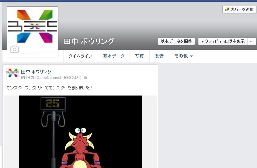 Facebookゲームコネクトを使えば、ゲーム中で起こったことをそのまま自分のFacebookで共有することができます。スコアラーのグラフィックやスコアデータ、モンスターファクトリーで作ったモンスター、ミニゲームの結果などをFacebookで共有することができるのです。このようにボウラーがセンターで体験した楽しさを共有することで、センターの宣伝にもなります。顧客満足度アップと無料の宣伝効果を期待できるという一石二鳥の機能です。
